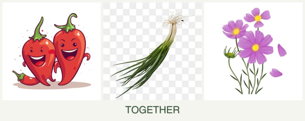 Planting peppers, chives, and cosmos together offers several advantages: