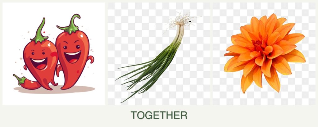 - Space Efficiency: These plants can be arranged to maximize garden space, with chives filling in gaps between larger pepper and dahlia plants.