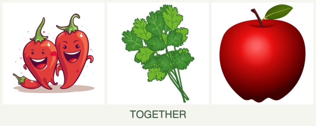 Growth Requirements: Peppers and cilantro both prefer full sun and well-drained soil, making them compatible for garden beds or containers. Apples, however, need more space and have a different root structure, which can compete with smaller plants for nutrients.