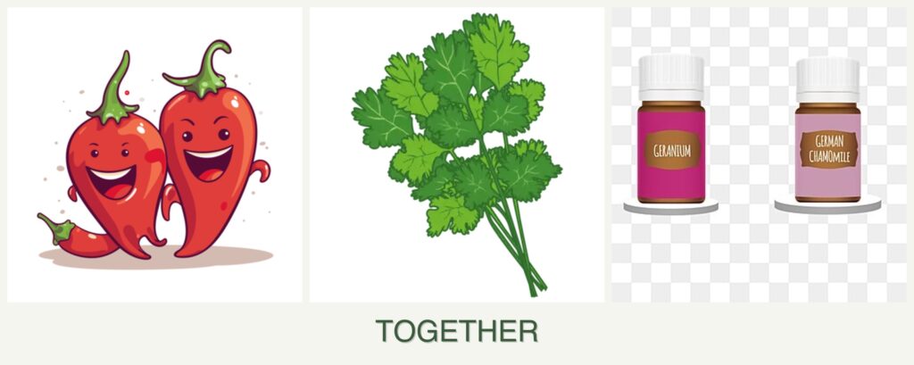 - Nutrient Needs and Spacing: All three plants have moderate nutrient requirements. Peppers and geraniums need more space due to their spread, while cilantro can fit into smaller gaps.