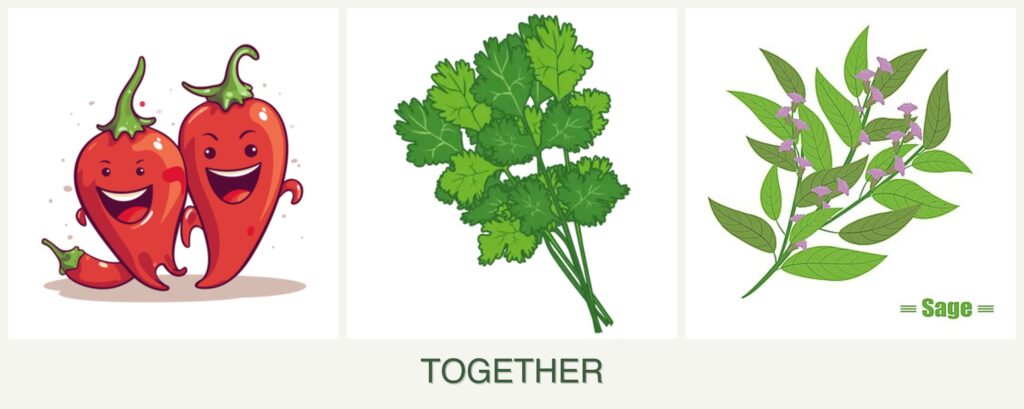 Planting peppers, cilantro, and sage together can offer several advantages: