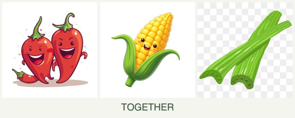 - Resource Competition: Corn’s high nutrient demand can affect peppers and celery if not managed with proper fertilization.