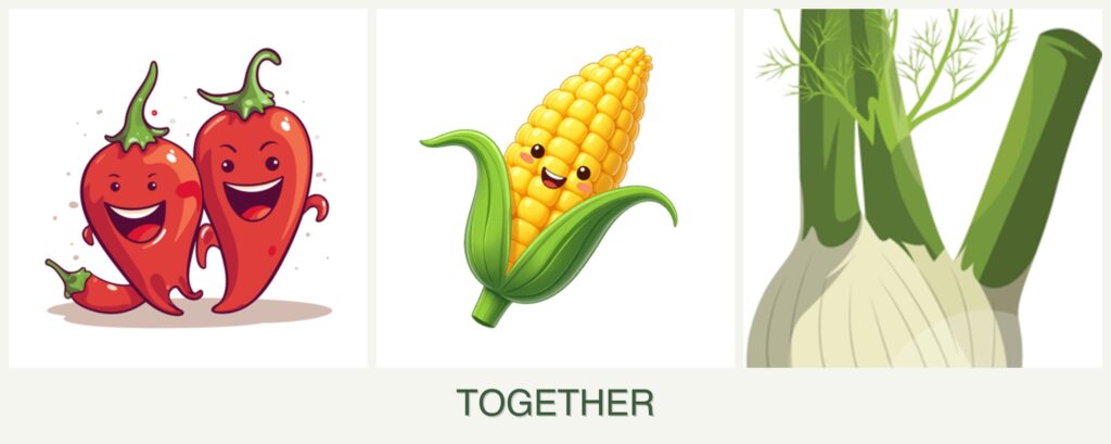 While peppers and corn can be planted together, the benefits are limited when fennel is introduced. Here are some advantages of planting compatible pairs:
