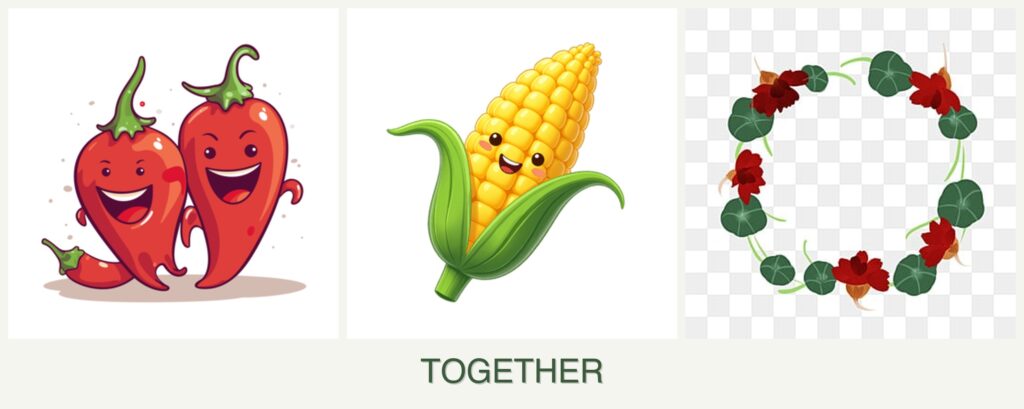 - Timing: Plant corn first, as it takes longer to mature, followed by peppers and nasturtiums once the threat of frost has passed.
