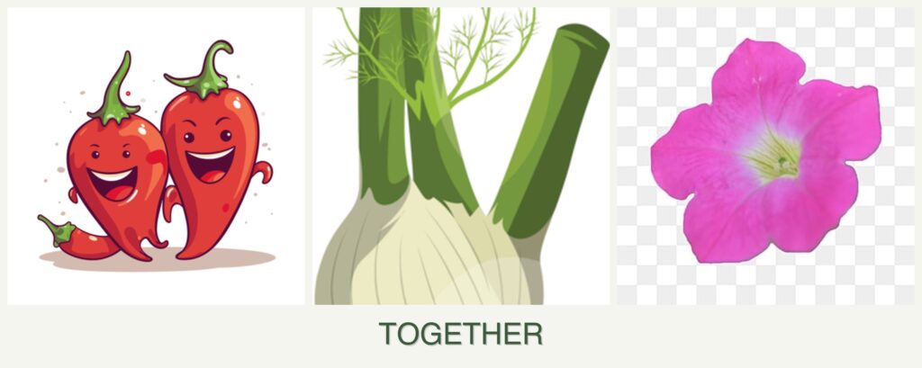 - Nutrient Needs and Spacing: Peppers and petunias have similar nutrient and spacing requirements, unlike fennel.