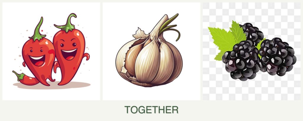 Pest Repellent Properties: Garlic’s strong scent can deter many pests, providing a protective barrier for peppers and blackberries.