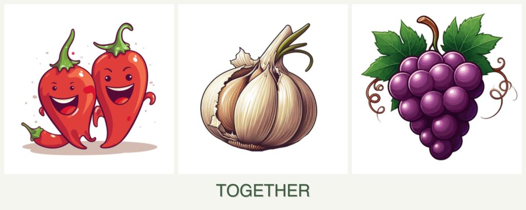 Planting peppers, garlic, and grapes together can offer several benefits: