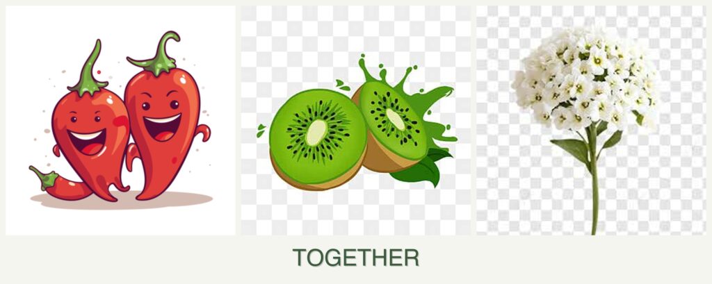 - Nutrient Needs & Spacing: Peppers and alyssum have moderate nutrient needs, whereas kiwi is a heavy feeder. Adequate spacing is essential to avoid competition for resources.