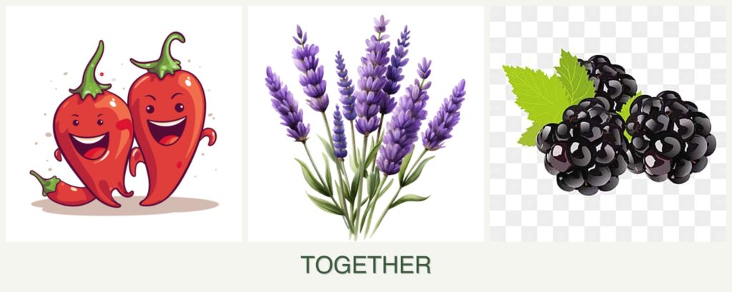 - Pollinator Attraction: Lavender attracts pollinators, which can benefit the fruiting of peppers and blackberries.
