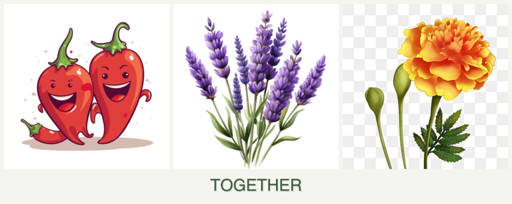 Planting peppers, lavender, and marigolds together offers several benefits: