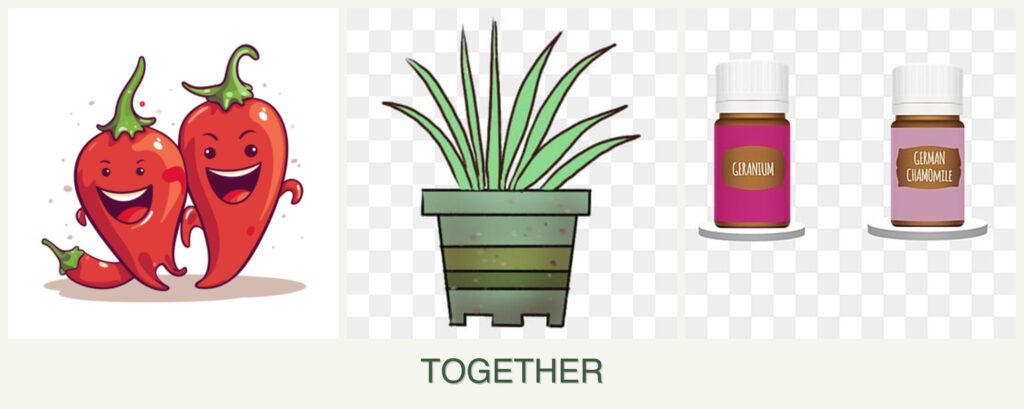 - Pest Control: Geraniums and lemongrass are known for their pest-repellent properties, which can help protect peppers from common garden pests.