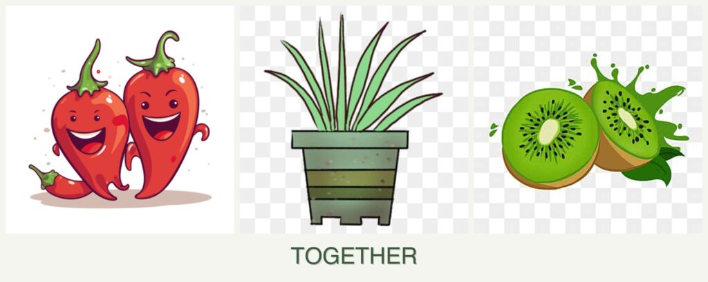 - Pollinator Attraction: Kiwi flowers can attract pollinators, which may indirectly benefit the fruiting of peppers.