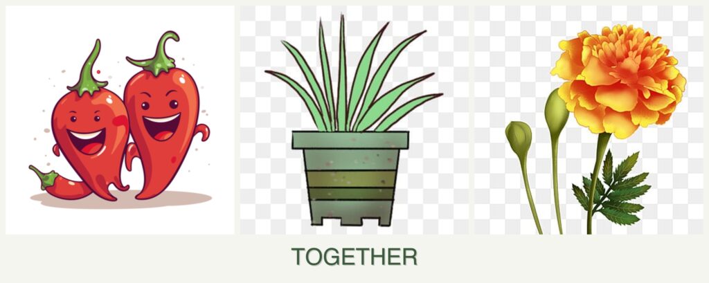 - Pest Repellent Properties: Marigolds help deter nematodes and other pests, protecting peppers and lemongrass.