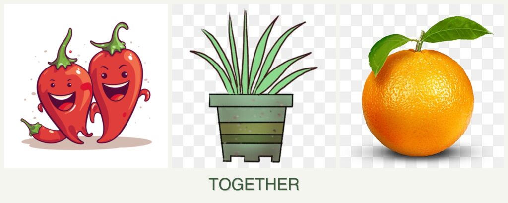 Planting peppers, lemongrass, and oranges together offers several benefits: