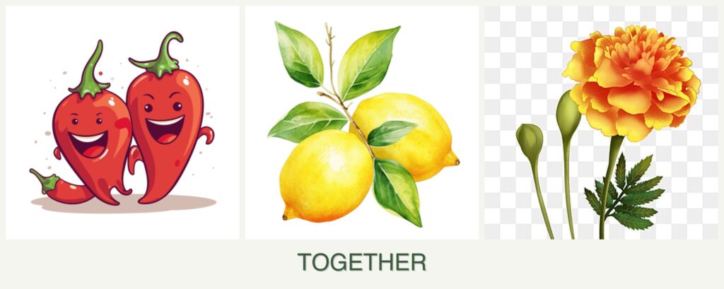 Planting peppers, lemons, and marigolds together offers several advantages: