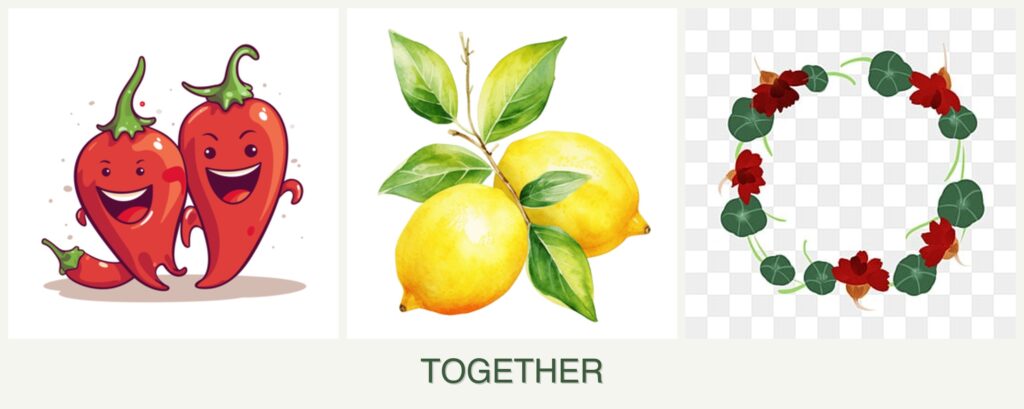 - Improved Flavor and Growth: Peppers and lemons benefit from the pollinator attraction of nasturtiums, enhancing fruit set and flavor.