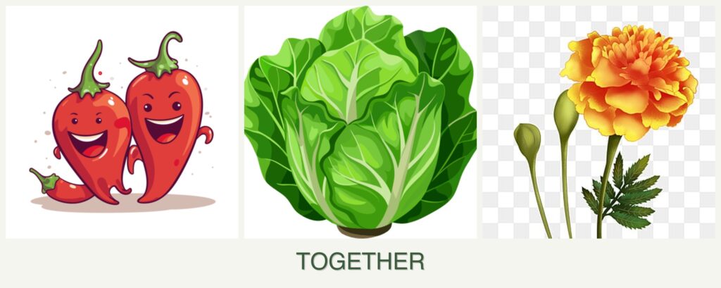 - Pest Repellent Properties: Marigolds help deter nematodes and aphids, protecting peppers and lettuce.