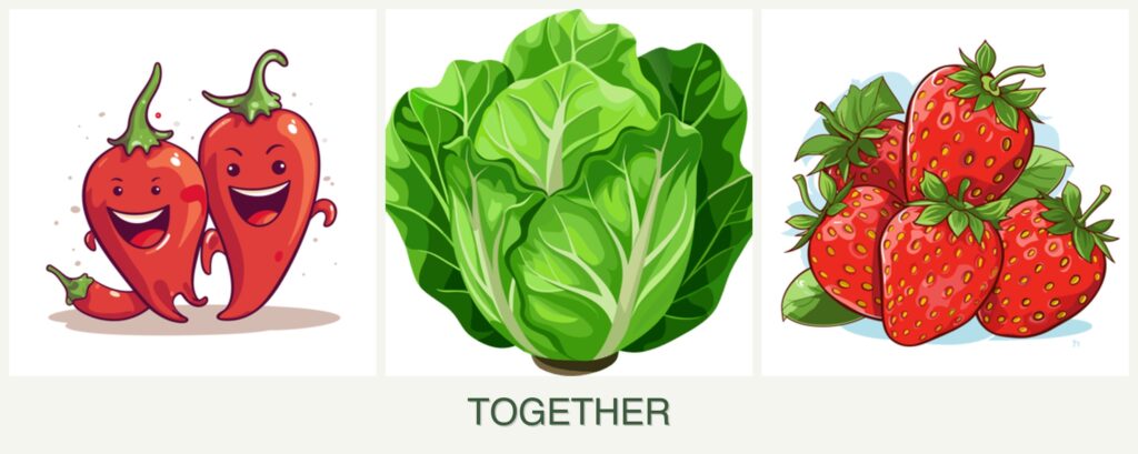 - Pest Control: Peppers can deter certain pests that affect strawberries, while lettuce can attract beneficial insects.