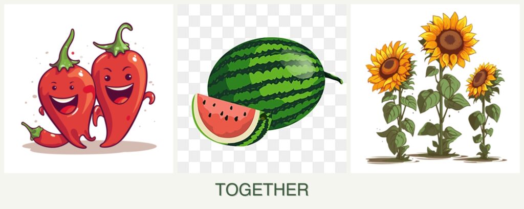 - Different Watering Needs: Melons require more water than sunflowers and peppers, so careful irrigation management is essential.
