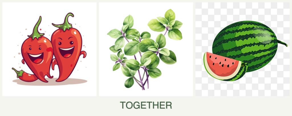 - Resource Competition: Melons’ extensive root systems and water needs can overshadow peppers and oregano.