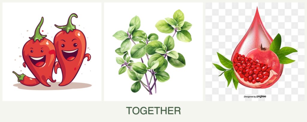 Planting peppers, oregano, and pomegranates together can yield several benefits: