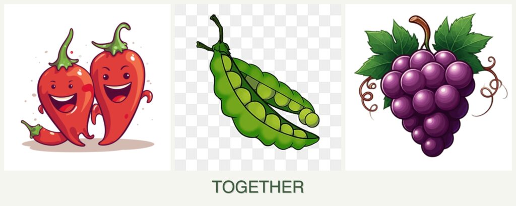 - Nutrient Needs: Peas enrich the soil with nitrogen, which might not be ideal for peppers and grapes.