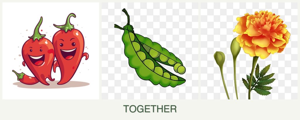 - Pest Repellent Properties: Marigolds can deter nematodes and other pests, protecting peppers and peas.