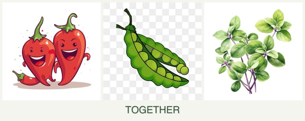 Their different growth requirements mean they won’t directly compete for resources, making them suitable companions. Oregano can act as a ground cover, helping retain soil moisture, while peas can provide nitrogen to the soil, benefiting peppers.