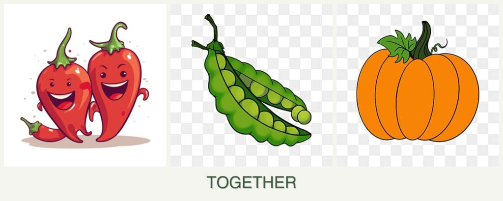 - Growth Requirements: Peppers and peas share similar sunlight and watering needs, while pumpkins require more space due to their sprawling growth habit.