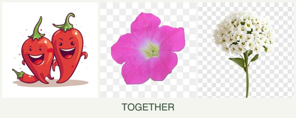 - Pollinator Attraction: The flowers of petunias and alyssum attract pollinators, which can benefit the fruiting of peppers.