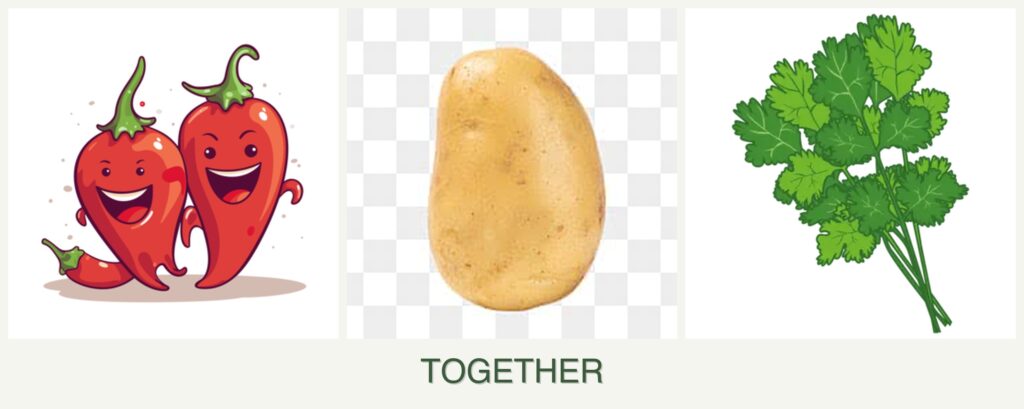 - Growth Requirements: Peppers and cilantro share similar sunlight and water needs, while potatoes require more space and can tolerate cooler temperatures.