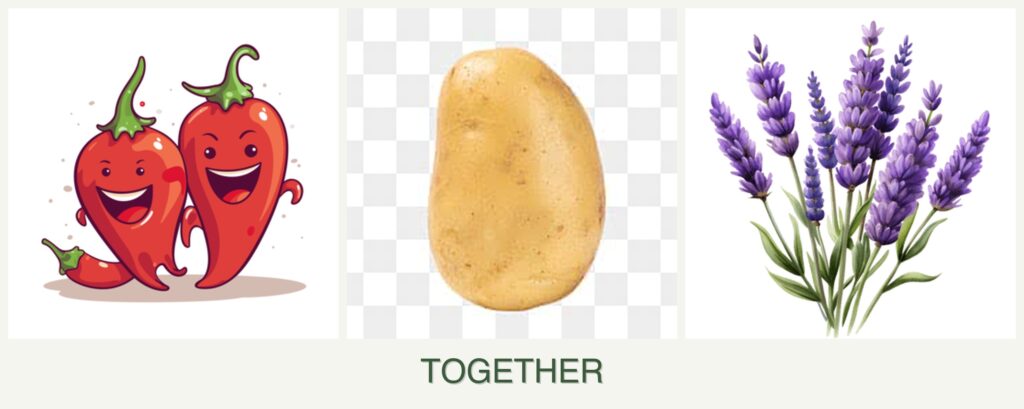 - Optimal Spacing: Ensure adequate spacing to prevent competition—plant peppers and potatoes at least 18 inches apart, and keep lavender separate.