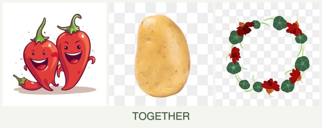 - Timing: Plant potatoes in early spring, followed by peppers and nasturtiums after the last frost.