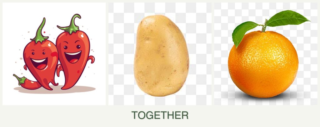 - Growth Requirements: Peppers and potatoes prefer similar soil conditions but compete for nutrients. Oranges, however, need a well-drained soil and more space.