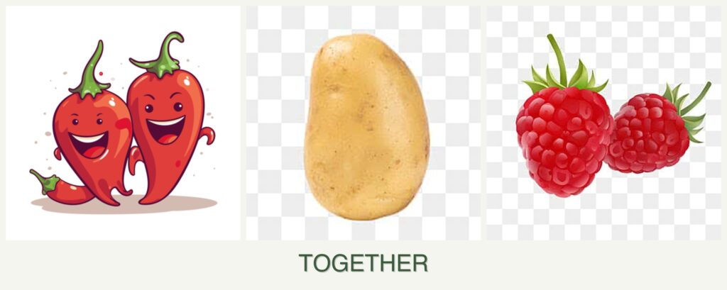 - Growth Requirements: Peppers need warm temperatures, whereas potatoes can tolerate cooler conditions. Raspberries require a different soil type and more space.