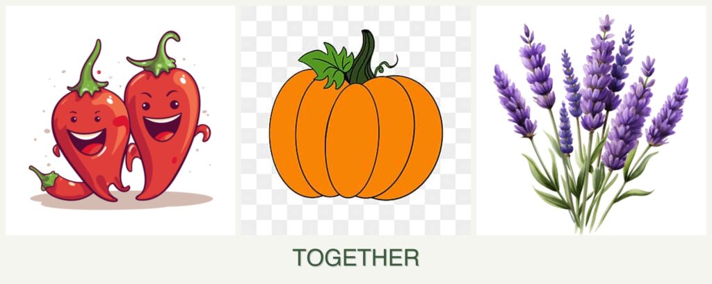 - Growth Requirements: Peppers and pumpkins require similar conditions, such as full sun and well-drained soil, but lavender thrives in drier, less fertile soil, which can create conflicts in care.