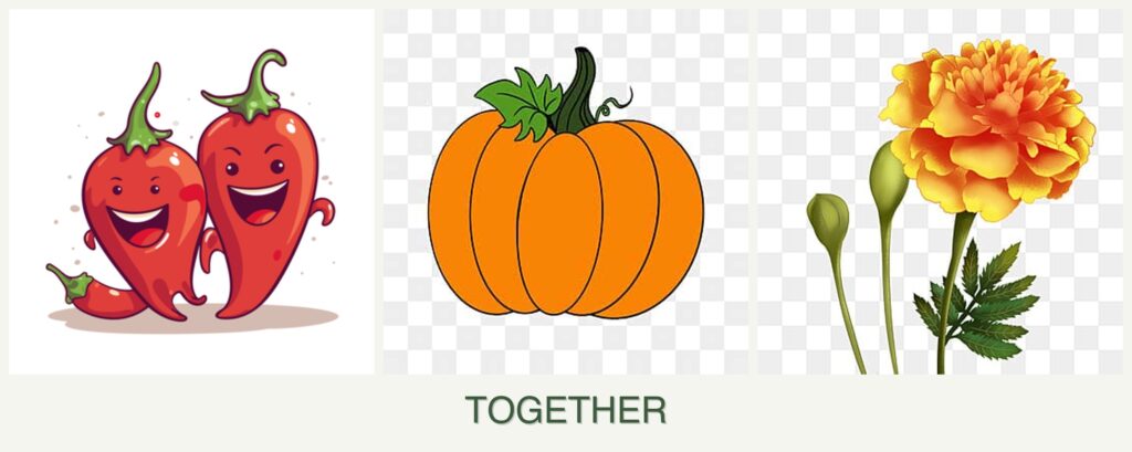 - Nutrient Needs: While pumpkins are heavy feeders, requiring nutrient-rich soil, peppers are moderate feeders. Marigolds have minimal nutrient demands, preventing competition.