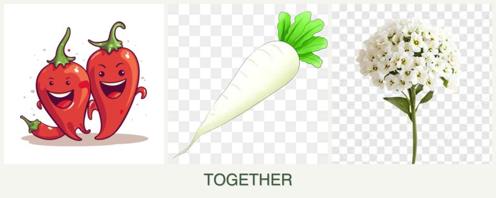 - Growth Requirements: Peppers thrive in warm conditions, needing full sun and well-drained soil. Radishes, on the other hand, grow quickly and can tolerate cooler temperatures, making them ideal for early planting. Alyssum prefers similar conditions to peppers, making them a good match.