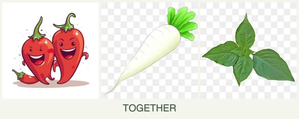 - Pest Repellent Properties: Basil’s natural pest-repelling abilities protect peppers and radishes from common garden pests.