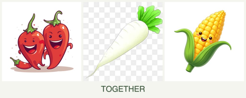 Growth Requirements: Corn grows tall and provides shade, which can be beneficial for peppers that may need some protection from the intense midday sun. Radishes, being root vegetables, occupy a different soil layer, reducing competition for nutrients.