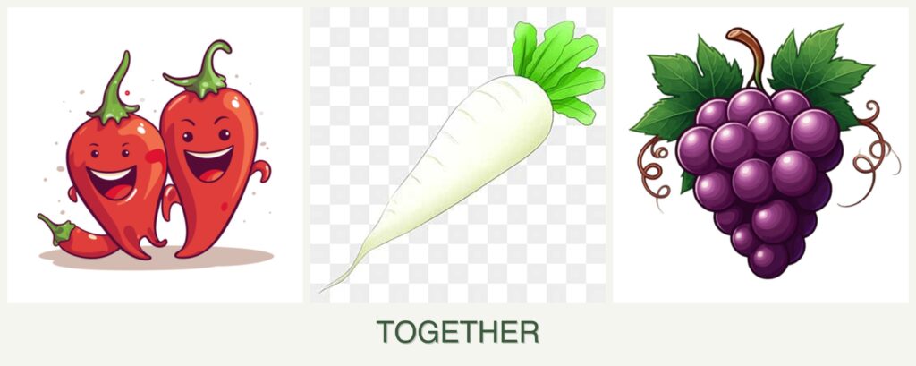 Pest Control: Radishes can repel certain pests that affect peppers, such as aphids. However, grapes attract different pests, such as grapevine beetles, which don’t typically affect peppers or radishes.
