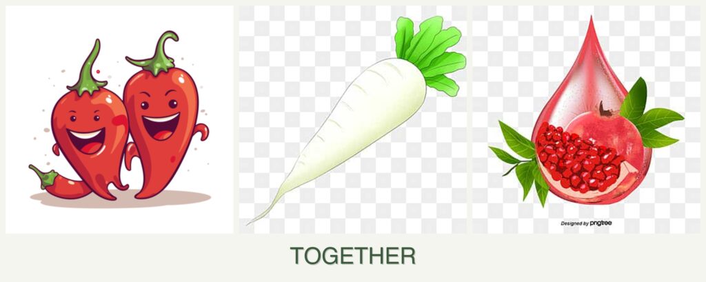 Can you plant peppers, radishes and pomegranates together?