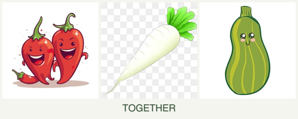 - Growth Requirements: Peppers and zucchini need similar sunlight and temperature conditions, whereas radishes can tolerate cooler weather.