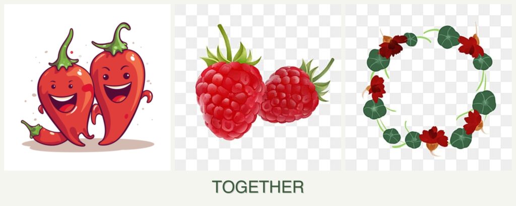 Growth Requirements: Peppers prefer warm temperatures and full sun, while raspberries thrive in cooler climates and partial sun. Nasturtiums are versatile, adapting to most conditions but favor full sun. Ensuring each plant’s growth needs are met is crucial.