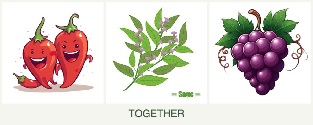By following these guidelines, you can successfully grow peppers, sage, and grapes together, reaping the benefits of companion planting while addressing potential challenges. Happy gardening!