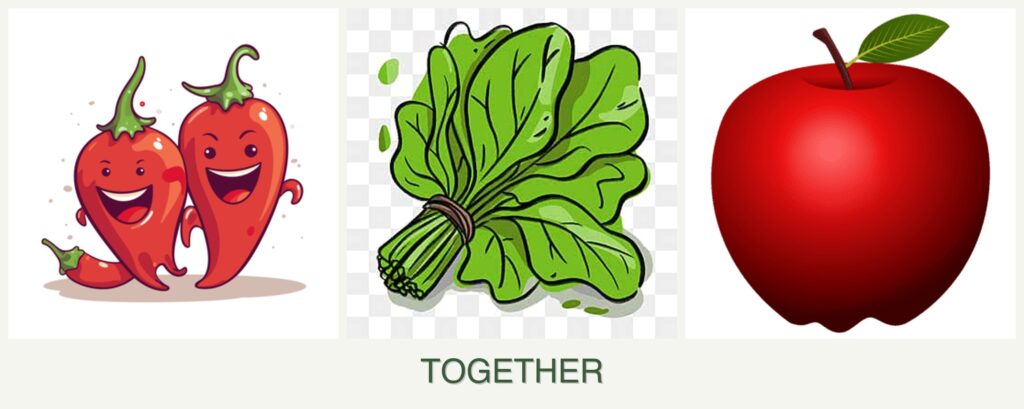 - Growth Requirements: Peppers and spinach share similar growth conditions, but apples require different care.