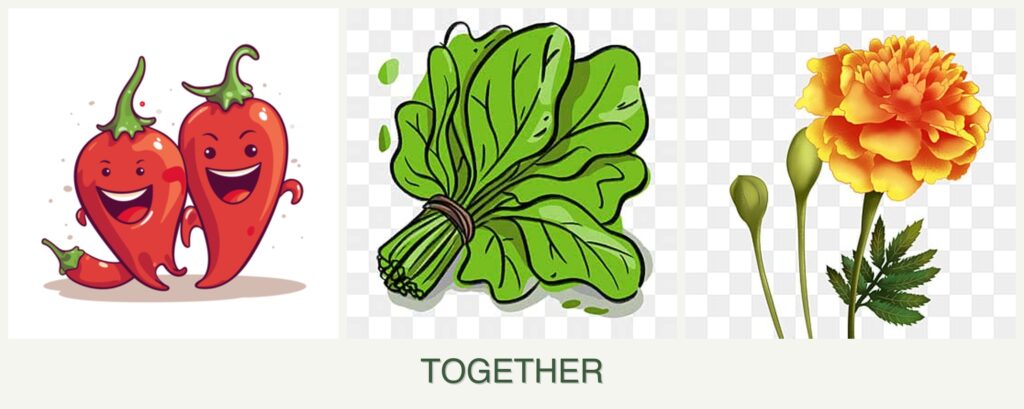 - Pest Control: Marigolds are known for repelling nematodes and other insects, protecting peppers and spinach.