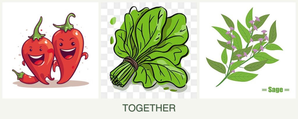 - Pest Repellent Properties: Sage naturally deters pests, which can protect both peppers and spinach.