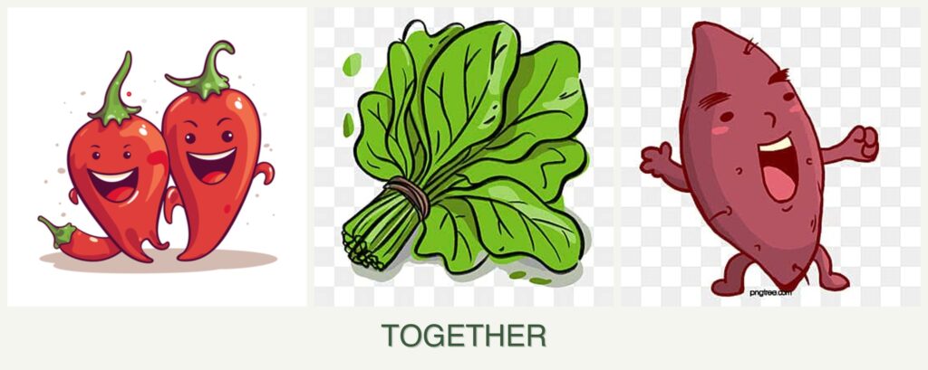 Planting peppers, spinach, and sweet potatoes together can offer several benefits: