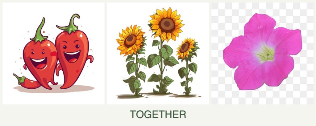 Planting peppers, sunflowers, and petunias together offers several advantages: